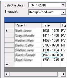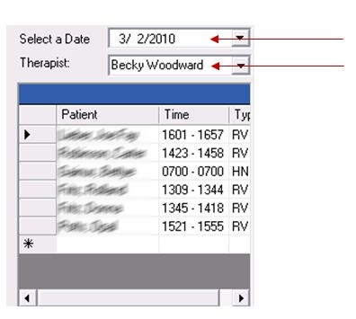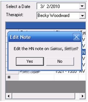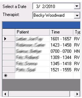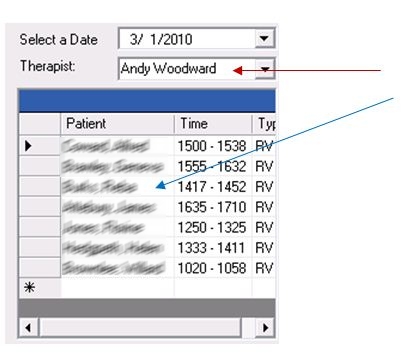 7. In View mode the Therapist field is also enabled so that you can view different therapist’s notes to see what therapy was performed for the patient.