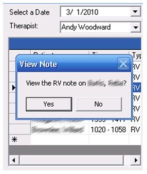 8. When you choose a different Therapist the page will load the notes performed by that therapist on that day so that you can view the note if need be.